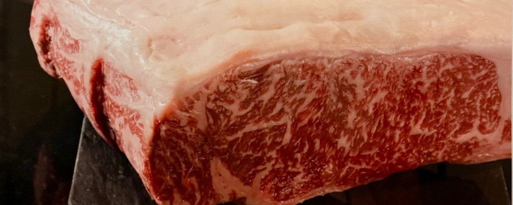 We checked into our hotel, and that evening got to the Tor Road Steak Aoyama promptly at 7. I was hungry. Kobe has countless restaurants serving pieces of the highly marbled Wagyu cows; picking a dining spot is a challenge. I had decided to follow the advice of an online blogger (Tom Bricker of Travel Caffeine) who offers a ton of information about Japan travel. In his itinerary for Kobe, Bricker was effusive about Tor Road Steak House, so back in July I made a reservation through the restaurant’s Facebook page. It was a relief when the staff actually seemed to be expecting us.