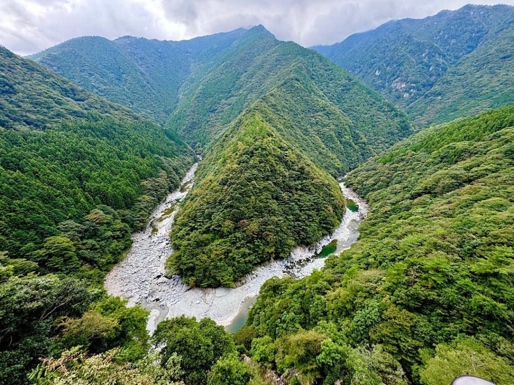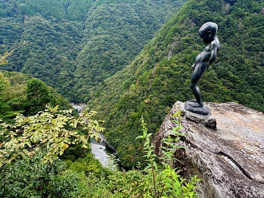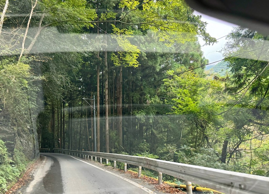 We rented the car because we wanted to visit some of the wildest terrain in Japan, places where the trains don’t penetrate, deep within the mountains of Shikoku (one of Japan’s four main islands.) Yesterday afternoon we drove into the densely forested Iya Valley on roads notched out of almost-vertical cliffs, byways that often narrowed to a single lane.