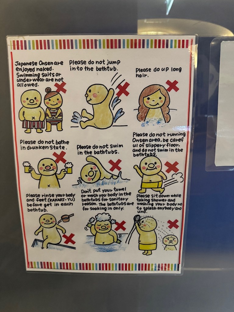 Over and over, even in famous, important sites, we found a shocking dearth of signs or placards or other educational material in English (or any language other than Japanese.) To some extent, we could overcome this by using Google’s Translate app or Google Lens. We’ve never used either much before, but today they’re game-changers in a country where you can’t read. They liberated us to waltz into restaurants without worrying if an English menu would be available (as often as not, it wouldn’t be.) They helped us figure out air-conditioning controls and all manner of street warnings and how to work a coin-op washer/dryer.