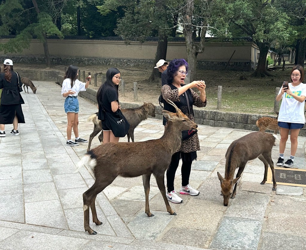 I’m publishing this post from my desk in San Diego, where I’m immersed in Re-Entry. I’ve been tempted to blow off writing anything more about Japan. Our time in Osaka was gratifying and fun, but maybe not so interesting to read about. We made a quick day trip to Nara, the ancient Japanese capital and a magnet for visitors who come to feed special crackers to the vast numbers of semi-wild deer.