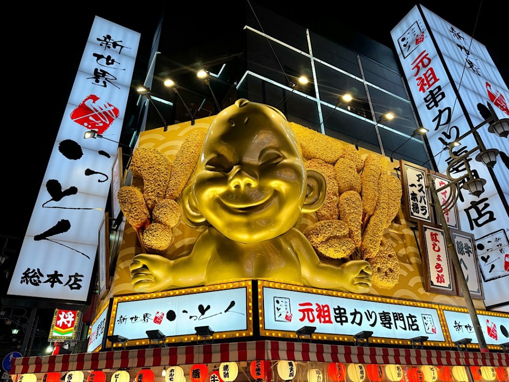 Steve and I also briefly strolled the grounds of the mighty Osaka Castle. But mostly we concentrated on food in this city known as “the grocery store of Japan.” One morning we spent a couple hours roaming the area around Dotonbori Street, a vortex for delicious street food and outrageous building decoration.