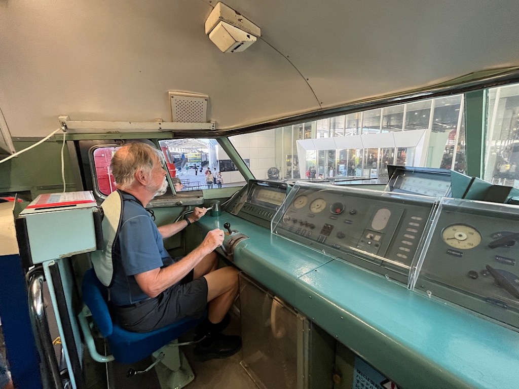 Steve and I went to the railway museum because our respect for Japanese railway technology knows no bounds. The country’s urban train systems are a wonder of the world — a stunning profusion of companies and services, with most trains arriving on time to the minute. For longer trips, the Shinkansen bullet trains have changed the world since the first one went zooming down the rails (50 years ago this month.)