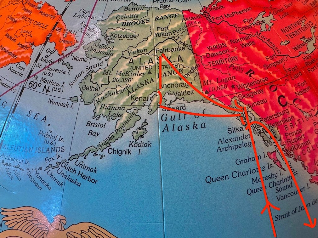 The mountain got dubbed “Mt. McKinley” by an East Coast gold-hunter in 1896, but according to my Fodor’s, the vast majority of Alaskans always continued to call it by its original name (which Barack Obama made official in 2015.) I finally found the name Mt. McKinley in one place: the giant relief map in the visitor’s center.