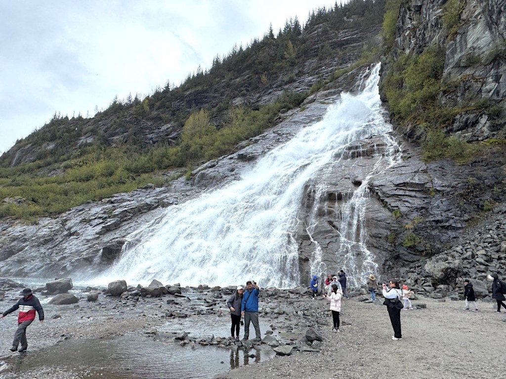 That afternoon we took a bus tour. I can’t say it showed us the park because this park is the size of Massachusetts. Only one road runs through it, actually half a road since 2021 when a worsening landslide section made the road impassible about 43 miles in. Access beyond that point has been blocked ever since, though a bridge to span the missing bit is nearing completion. It took our bus driver about 6 hours to take us close to the avalanche site and back.