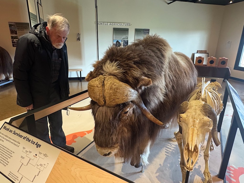 Over the next few days, Steve and I spent a lot of time at the Alaska Native Heritage Cultural Center and the Anchorage Museum. We drove to the an animal preserve where we took many pictures of Alaskan beasts that included…