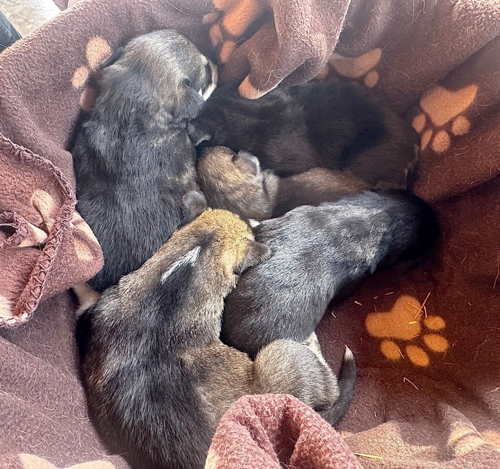 … and Sue explained that in the summer, when there’s no snow, Martin and his assistants train the dogs on the ATV. Unlike the service dogs Steve and I raise (who learn 35-40 verbal commands from us before they move on to the professional trainers), these canine athletes basically must master just two: Gee (meaning go to the right) and Haw (left). They do most of the serious preparation in the winter, working with bigger teams and connected to sleds. In the summers, they mostly get their exercise by romping with their fellows in nearby meadows.