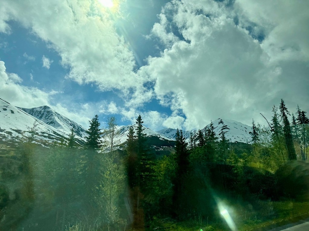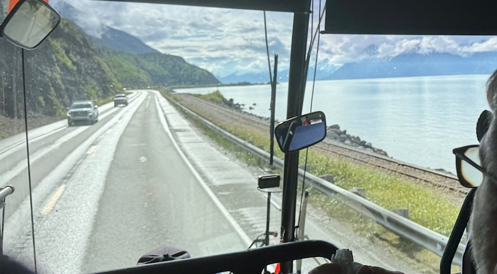 Steve and I weighed our options. We could get off, return to our home-exchange house, and drive the Tundra to Seward and back (hoping to extract refunds from the train company.) Or we could get on a bus that we were told would arrive momentarily. We chose the bus.