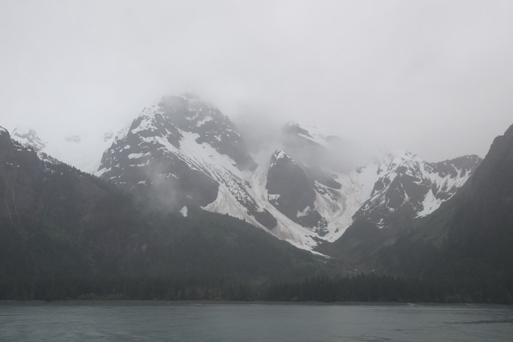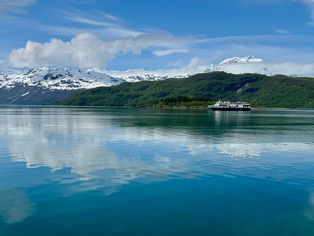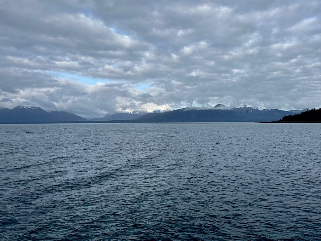 That’s how we missed seeing Discovery Glacier (or anything glacial other than smears of distant white glimpsed through the rain.) I felt philosophical. At least I’d learned what the Gulf of Alaska feels like on a nasty day (without suffering a whiff of seasickness). And we could still hope for better luck in Glacier Bay.