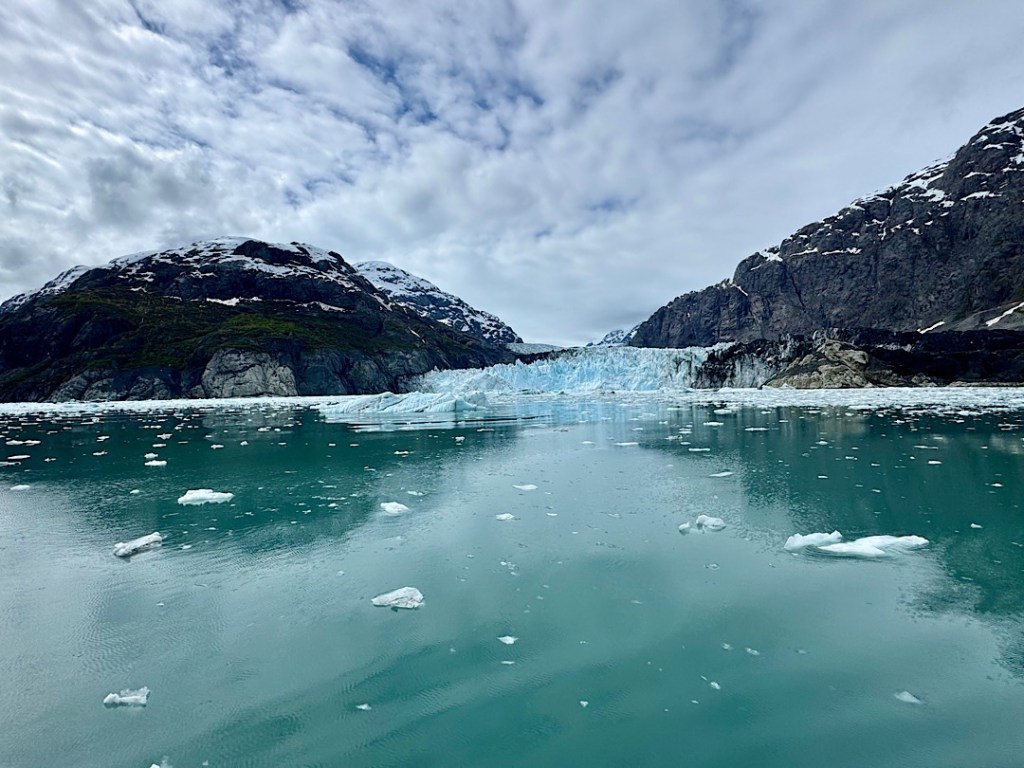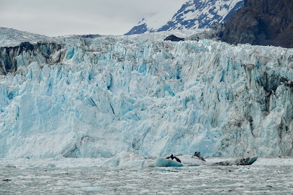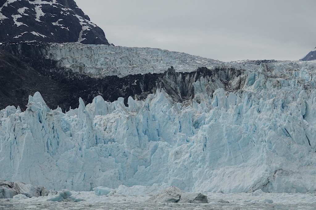 Some, like the Marjorie Glacier, are classically beautiful.The closer we got to it, the bluer it looked. Some, such as the Grand Pacific and Ferris glaciers don’t look like glaciers at all.The Reid Glacier no longer falls into the “tidewater glacier” category, having retreated from the water. The beautiful nearby John’s Hopkins Glacier is currently growing.