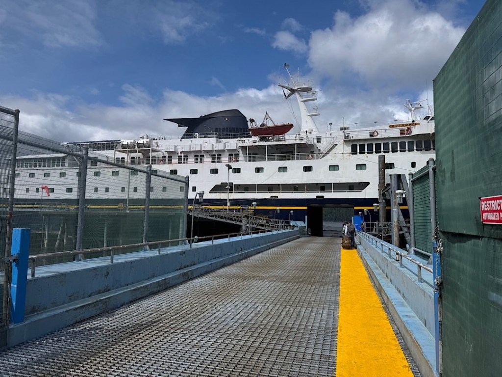No plans have been announced to end the the 62-year-old Alaska Marine Highway System — yet. But I had to wonder how much longer it will survive. Annual ridership reportedly has declined from 400,000 passengers (in the early ‘90s) to 185,000 (last year). The fleet has shrunk from 11 vessels to just 7, and many are rusting their way toward unseaworthiness. The state struggles to staff them and at times has had to cancel scheduled sailings for lack of officers and crew. The routes that do manage to operate are complex, and the boats don’t run often. I first became aware of all this when I was planning our trip six months ago. Trying to figure out a way to use the ferries to get where I wanted to go (and when) was one of the biggest touristic challenges I’ve tackled.