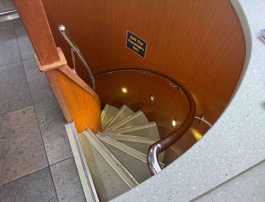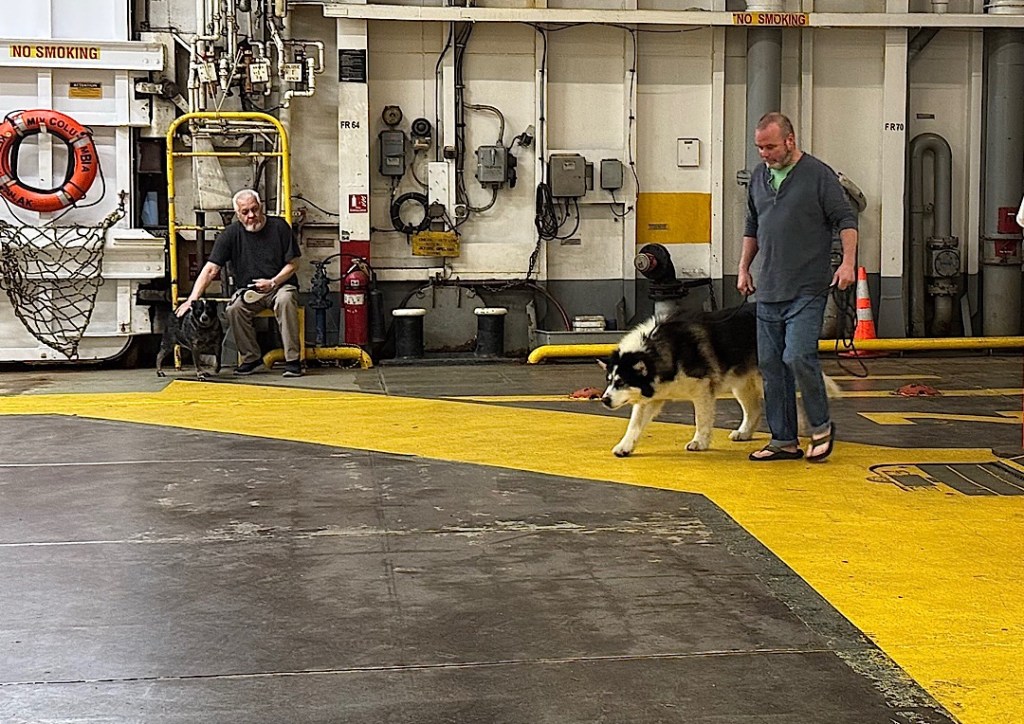 Other quirks enlivened the ride. At regular intervals, announcements informed us the car deck would be opening soon, so if you’d brought your dog and stowed it in your car or kennel, you could descend to walk (and clean up) after it for 20 minutes.