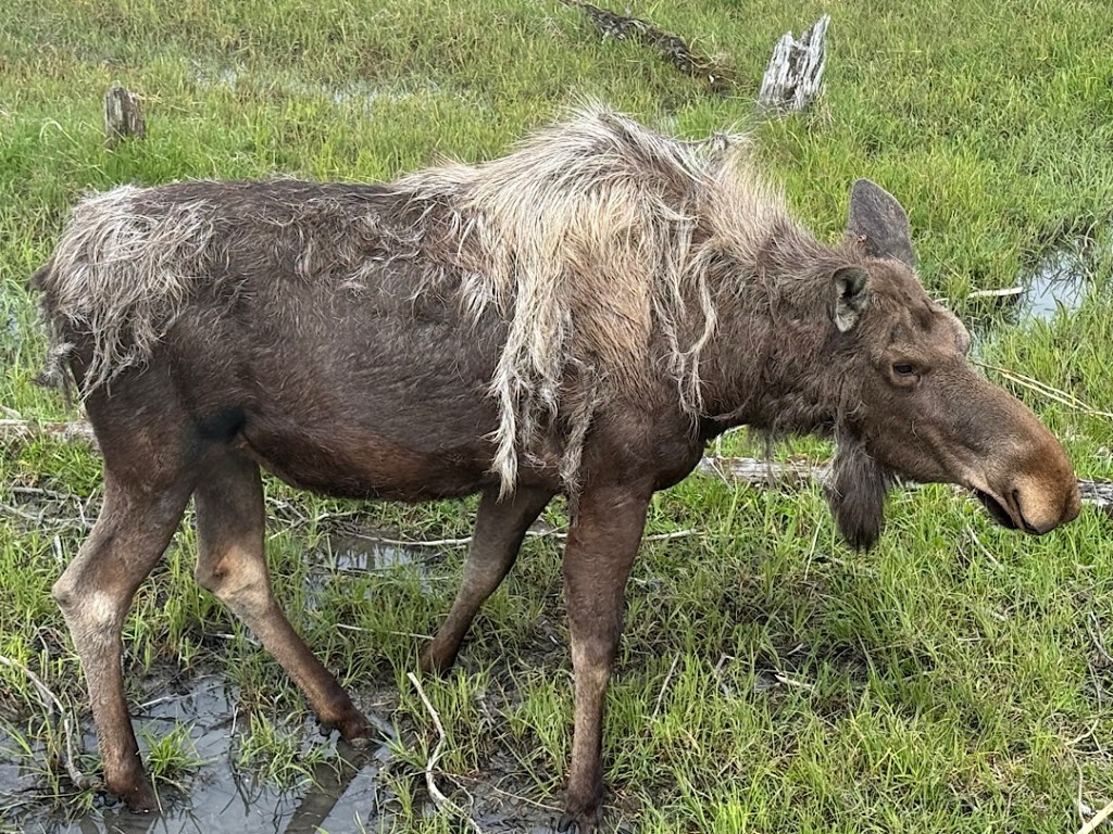 Wood bison…A grizzly bear…Moose (shedding the last of their winter coats)