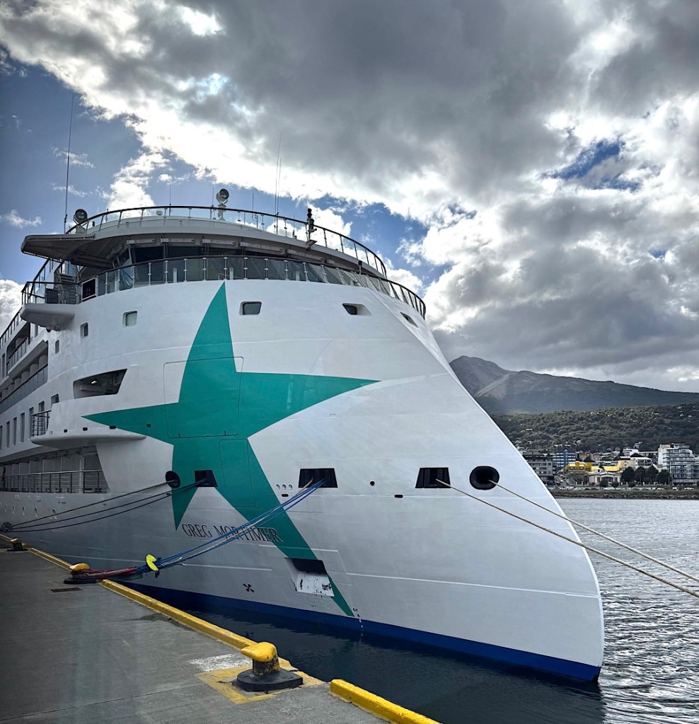 If we’d had more time,we could have gone for more hikes through the world-class scenery. Still, all our time in Ushuaia was mere prelude to the mind-boggling larger journey before us. Last night we cast off on a 4600-mile-long sea voyage through the Southern Ocean that, with luck, will take us to the Antarctic Peninsula, South Sandwich Islands, South Georgia Island, and the Falklands. With luck we’ll pull back up to the dock in Ushuaia three weeks from today.