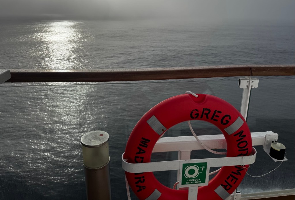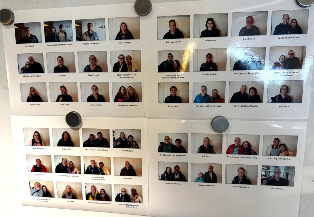 We’re traveling with a long-established Australian cruise line, Aurora Expeditions, on their last trip of the 2025-2026 season. We chose them partly because the Greg Mortimer is small, carrying a maximum of 130 passengers. As luck would have it, however, only 66 have signed up for this voyage. We’re being cared for by a crew of 96, a ratio that feels almost obscene.