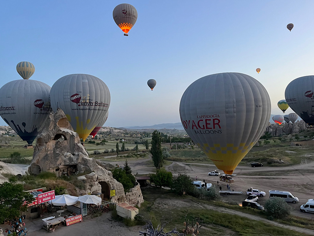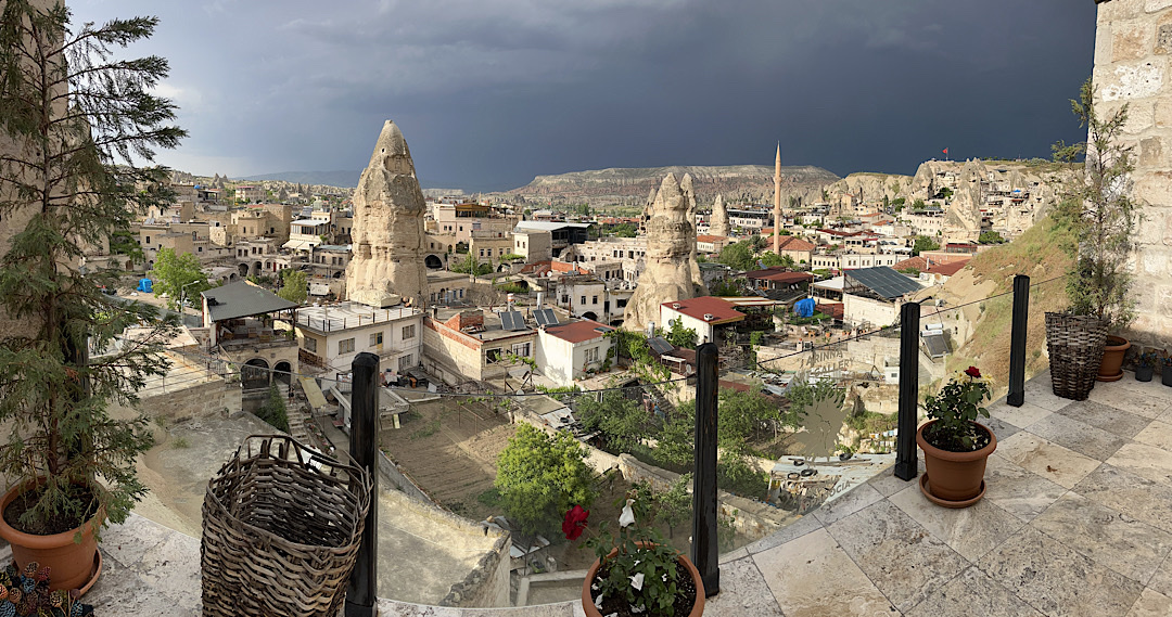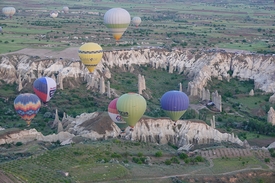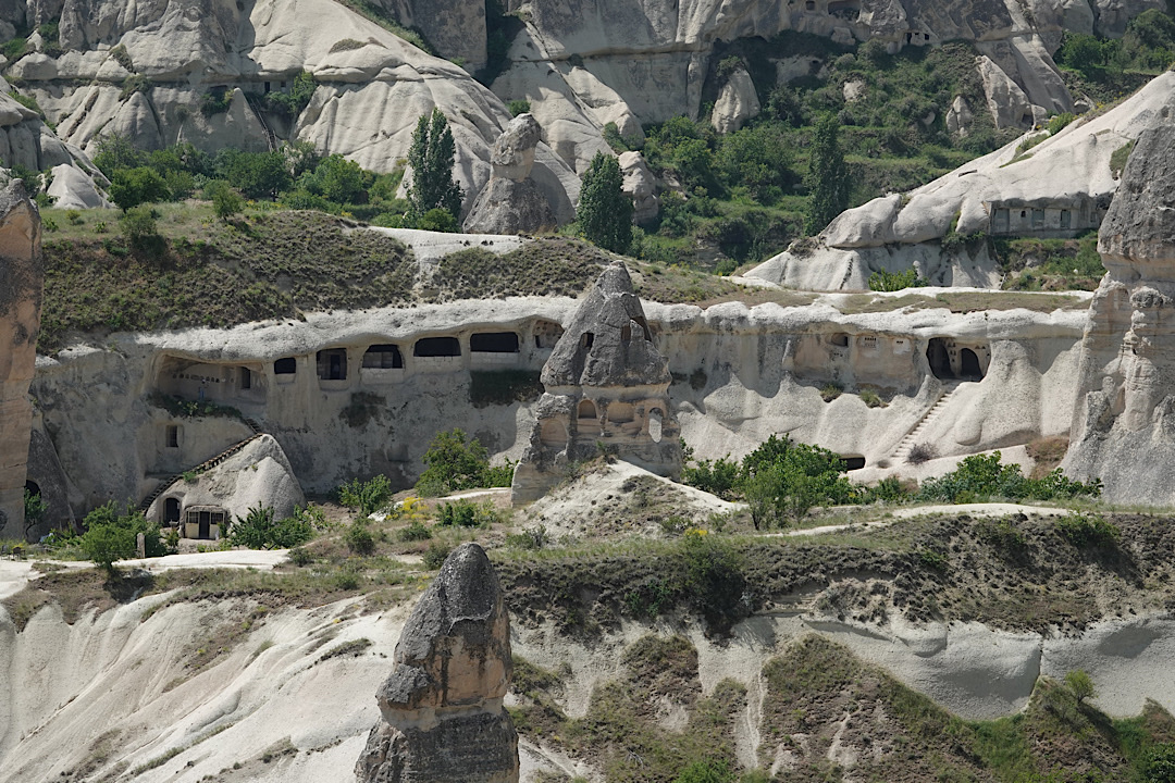 I had expected the major payoff of this experience to be the view of Cappadocia’s famous rock formations — towering stone columns formed by the action of wind and water on soft volcanic ash deposits and known locally as “fairy chimneys.” (They reminded us of the hoodoos of Bryce Canyon.) The views were extraordinary.