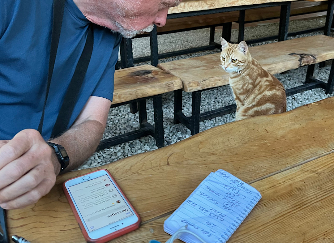 Unlike any swimming pool, there was no getting used to this cold — so intense it would suck the life out of anyone who lingered long. To the extent my brain was functioning, it registered amazement I was still breathing. I even treaded water; took a few strokes. After maybe 15 seconds I climbed out and stumbled back to the wood-fired sauna, which warmed me up as efficiently as it had the first time. After a while I went outside and re-entered the ice-water. Steve wouldn’t immerse himself, but at least he put his feet in.