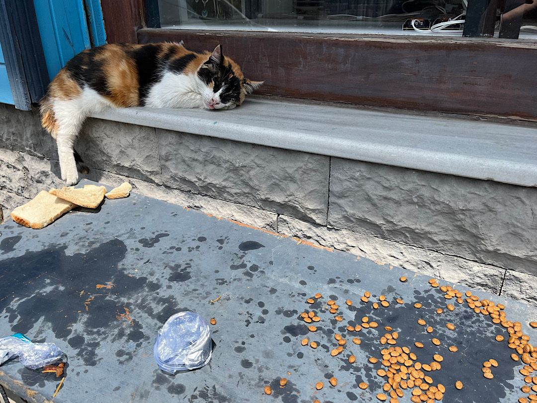 They’re clearly free spirits. Nobody owns them but people everywhere feed them – communal pets in the megalopolis.