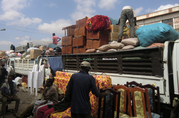 open-air markets offering everything from packets of salt and spices to fruits and vegetables to chat — the leaves chewed obsessively in Ethiopia and throughout the Middle East to extract what’s reported to be an amphetamine-like buzz. But tiny stores also sell paint, Peugeot parts, fabric, hair tonics, Coke, stationery, jewelry, meat, shoes, baskets, and more.