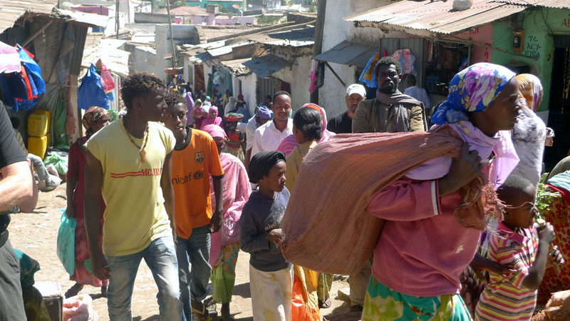 On the plus side, the streets team with able-bodied women wearing skirts and robes and scarves the color of jewels. They bustle with more commerce than we’ve seen in most of the other places we’ve visited in Ethiopia: sprawling