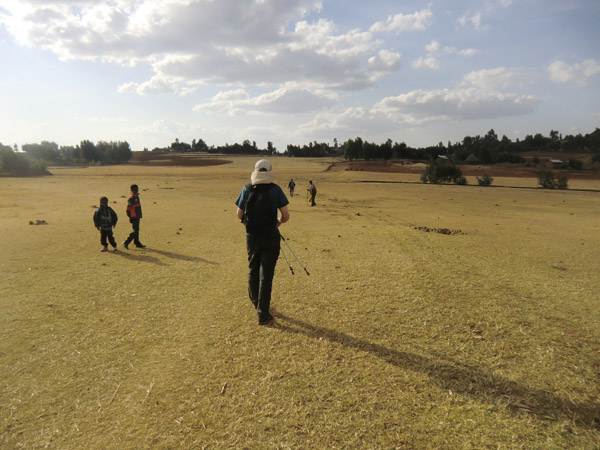 Dirt and rubble litter the cobble stones, and we also stepped around big piles of human excrement but remarkably little donkey shit. Finally we noticed that the donkeys all wear colorful little diapers under their tails. Dust and engine exhaust and cooking smoke and sewage-y smells taint the air, and there’s lots of noise pollution too: loudspeakers blaring Ethiopian pop and mosques (dozens upon dozens of them within the old city walls) caterwauling prayers throughout the day. Everywhere we’ve walked, children (and sometimes adults) have assailed us with cries of “Farenjo! Farenjo!” (which I think is best translated as “Foreigner! Foreigner!”) I’ve taken to retorting, “Habesha!” (“Ethiopian!”) Often that cracks people up, my goal.
