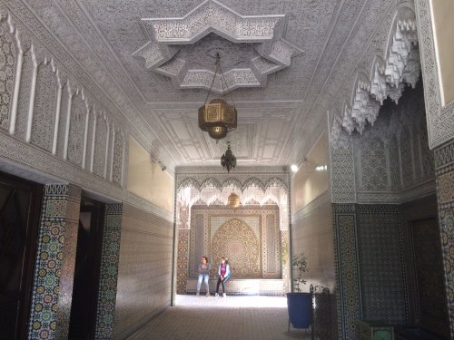 We’re staying here because our good friends Treacy, Erin, and Maya Lau so warmly recommended it. They’d been guests 6 or 7 years ago, shortly after the couple that owns it (Allah’s an Iraqi and Kati is Norwegian) began welcoming visitors. The city of Fez is more than 1000 years old; it claims to have the oldest university in the world, founded about 700 years ago. The building that Allah and Kati bought is not far from the university, and for that reason it’s believed to be about the same age.