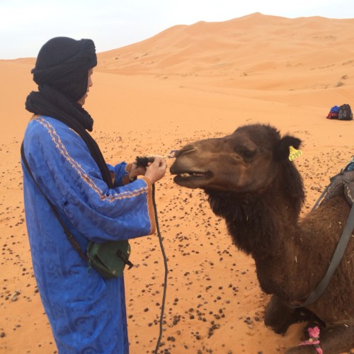 L’Hassan extolled the virtues of the 4WD desert tour that his family also offers, but the pedestrian tour with Omar appealed to us more. We did that, and afterward I wrote my post about our rug-buying adventure Friday. Then we organized our backpacks for our camel ride and camp-out.