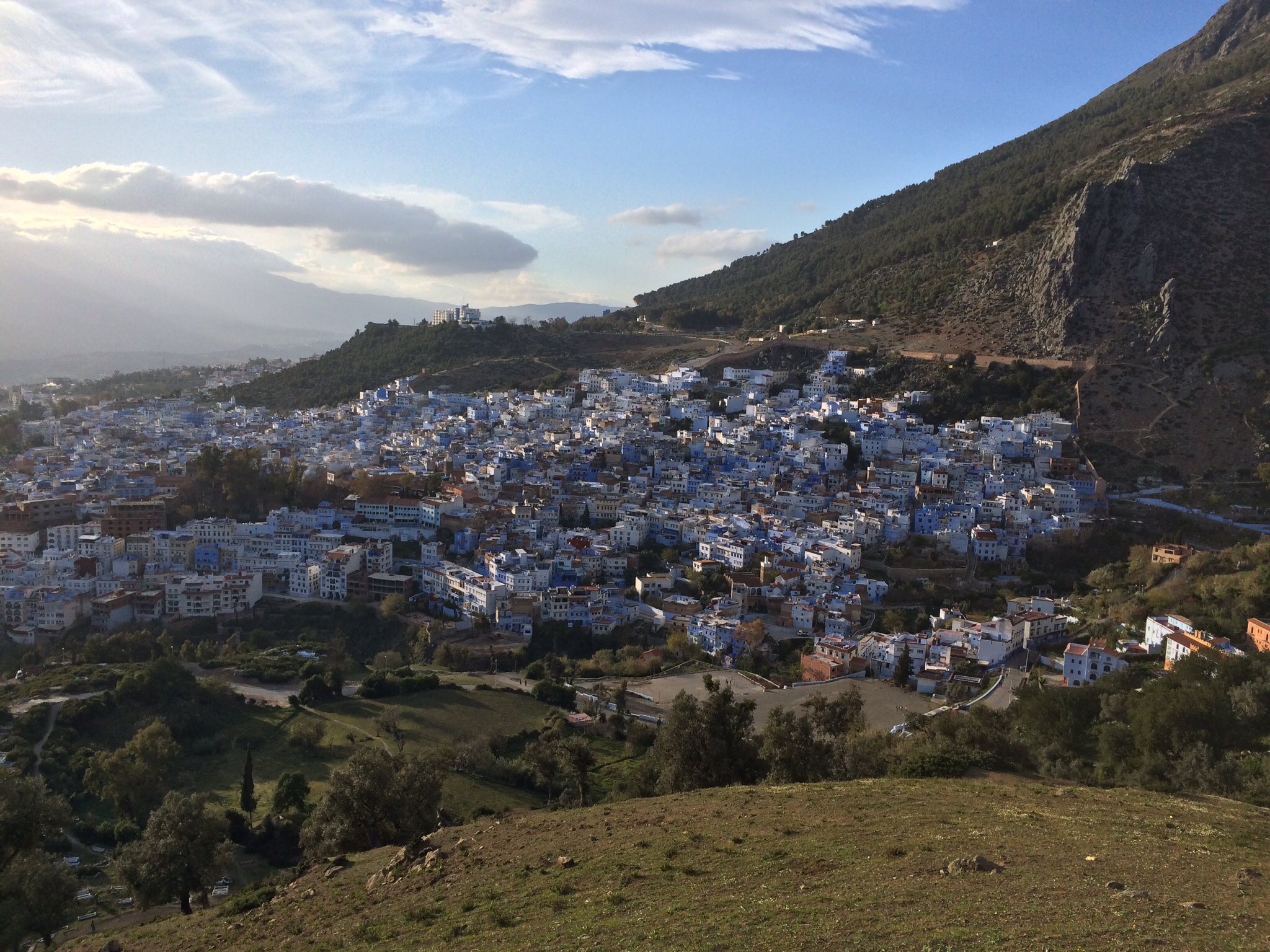 Most of Chefchaouen is blue — it’s the town’s signature, begun around 85 years ago, when a community of Moroccan Jews moved in and chose that color to contrast with the green tones of Islam. (In the centuries before then, this was a holy city, closed to all but Muslims.) The blue tones have spread, and today Chefchaouen is a UNESCO World Heritage Site and one of the fastest-growing tourist destinations in Morocco. I had thought nothing could be more picturesque than Fes, but this was picturesque in a completely different (clean! bucolic!) way. I commented to Carlos that I was sorry we had only one night here. He shrugged. The town was a good base for trekking in the mountains, he said. But a day or a day and a half was plenty of time to see Chefchaouen.