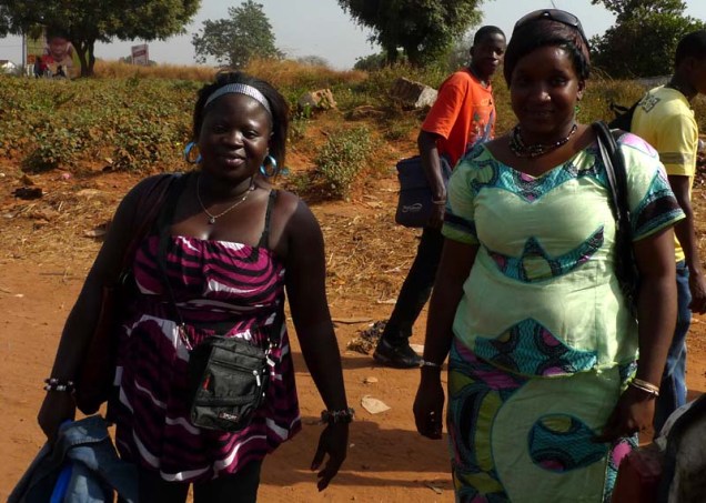 The bribe came after we’d gone through customs and gotten our GB exit stamp. We’d had to stop in front of a stand where a sullen looking guy told Laura he was in need of tea, so we would have to pay him 2000 CFA (about $4). She protested and argued, but he was malevolently implacable. Item by item, she started taking everything out of her backpack, even though we were all snickering at how ridiculous this was. The African who would be traveling with us in the bush taxi to Kolda jumped in, pointing out that even HE had had to pay the tea bribe. So we threw up out hands and dug out the money. It was all so brazen. I’m a little sorry we didn’t carry through and take out every item in all our bags. But we sensed that might have backed the guy into a corner that could have resulted in our spending many hours at that roadside.