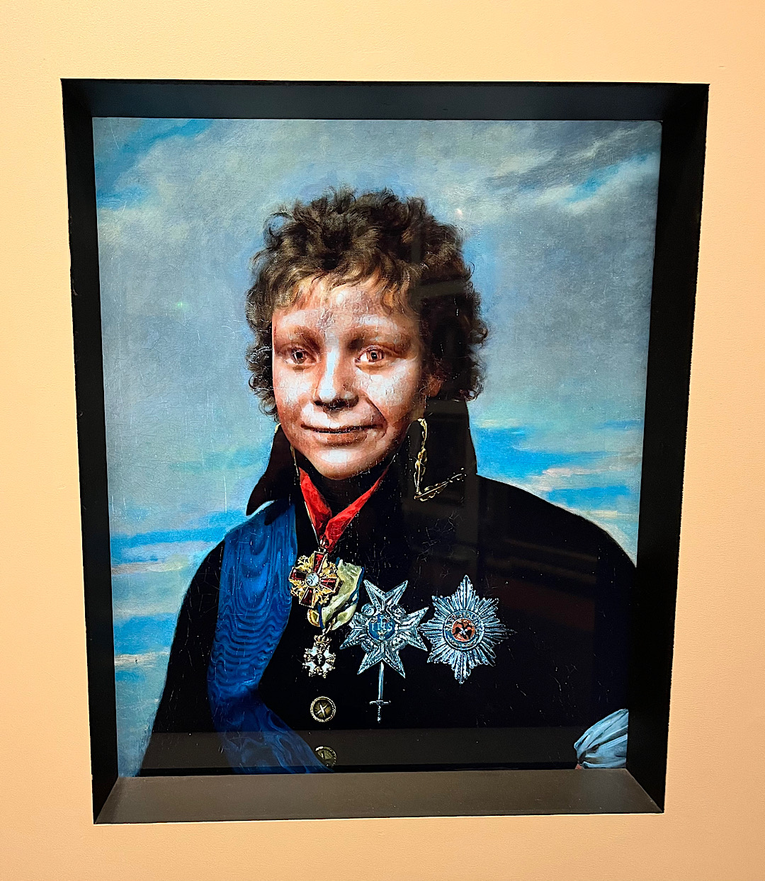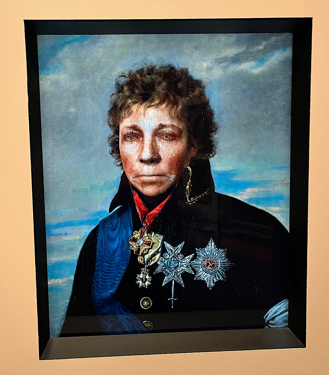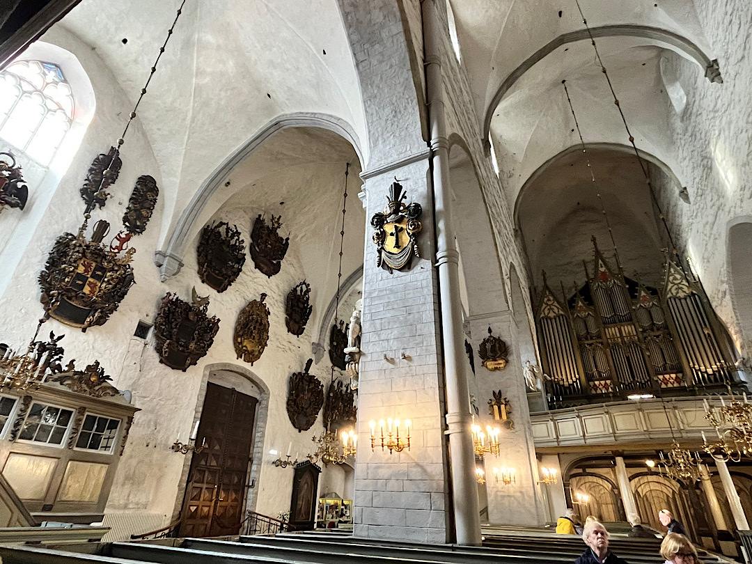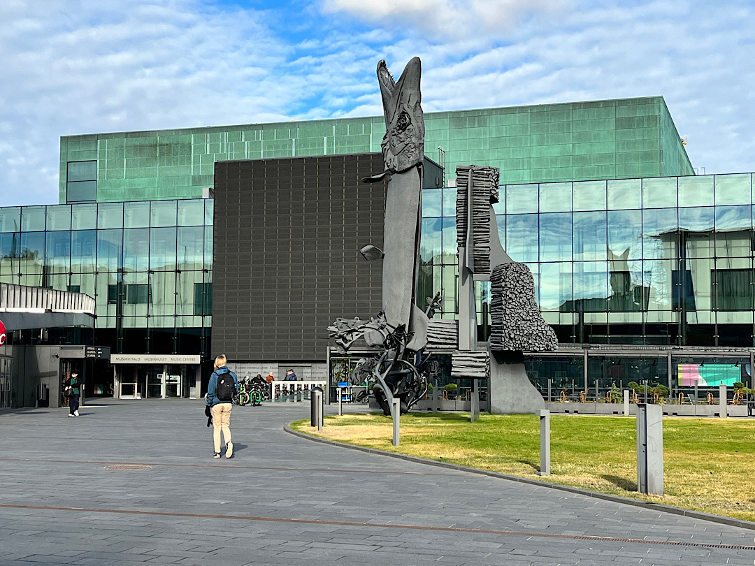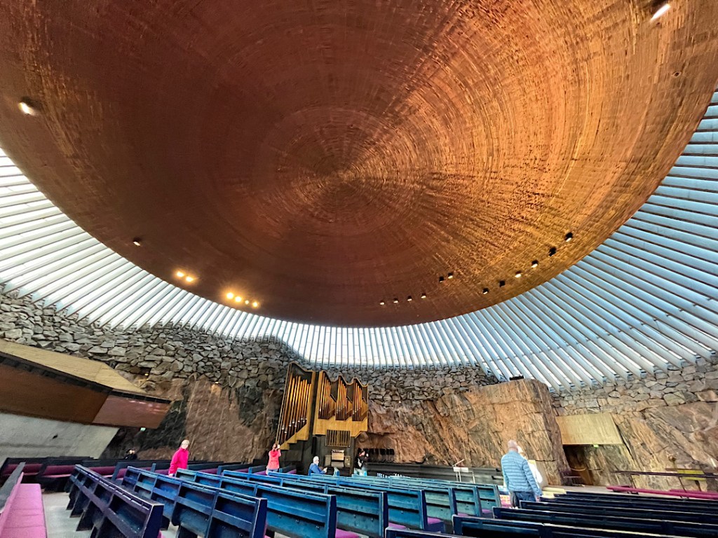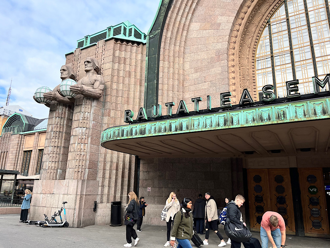 It made me briefly imagine moving to Helsinki just to get a library card. Instead we walked to the National Museum of Finland a few blocks away. The exterior looked almost grim. But inside we found the polar opposite of that boring grand ducal museum in Lithuania. The Finnish institution grabbed our attention with one clever exhibit after another. In a room that focused on medieval times, for example, the push of a button showed what x-rays had revealed about each of the carved wooden religious statues in the room — which trees they were hewn from, the original paint job, etc. Pushing a button in another gallery devoted to portraiture transformed some of the portraits into our (sort of) doppelgängers. (That’s Steve in the middle; I’m on the right.)