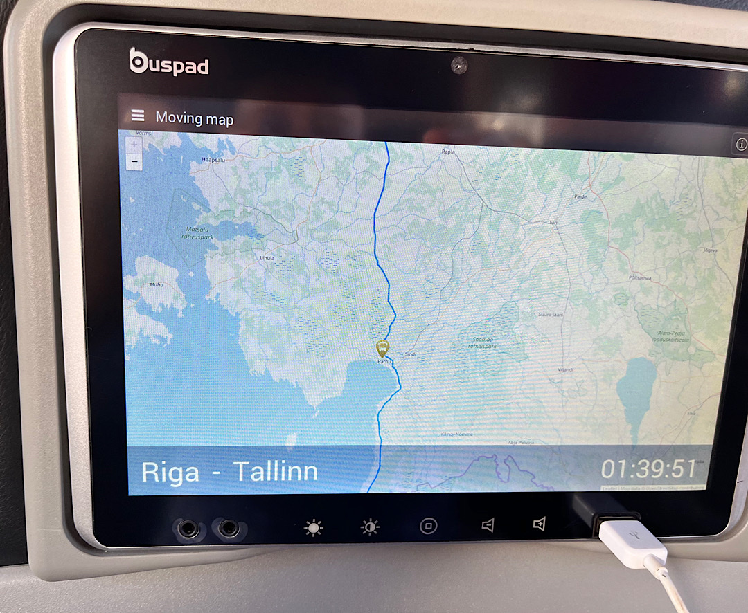 These vehicles proved to be spotless and comfy, with amenities that included TV screens in the seat backs, a decent onboard toilet, and free hot coffee. The journeys from Vilnius to Riga and then from Riga to Tallinn each took less than 5 hours, gave us a look at the countryside, and cost only $26 a person for seats in the “premium” section of the bus. The rides were smooth enough for me to work on my blog posts.
