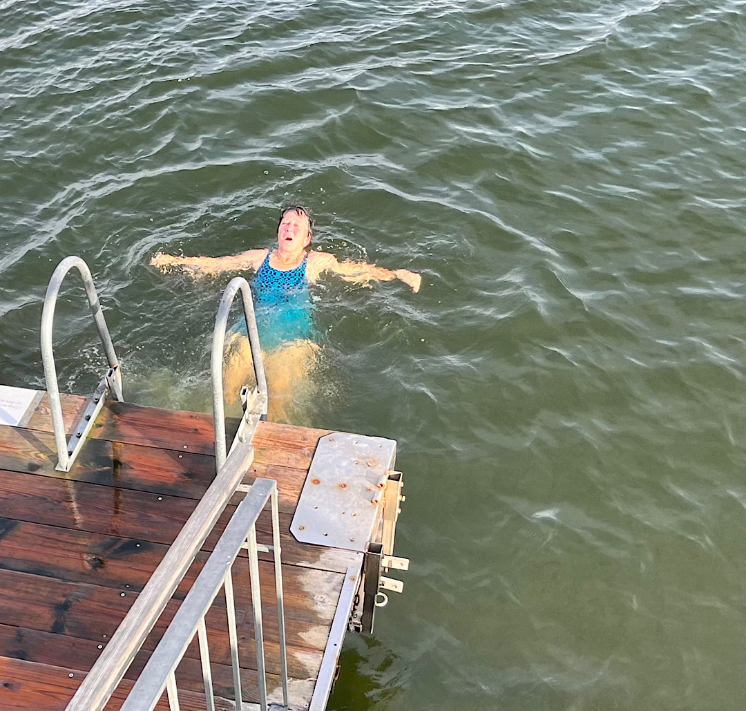 Unlike any swimming pool, there was no getting used to this cold — so intense it would suck the life out of anyone who lingered long. To the extent my brain was functioning, it registered amazement I was still breathing. I even treaded water; took a few strokes. After maybe 15 seconds I climbed out and stumbled back to the wood-fired sauna, which warmed me up as efficiently as it had the first time. After a while I went outside and re-entered the ice-water. Steve wouldn’t immerse himself, but at least he put his feet in.