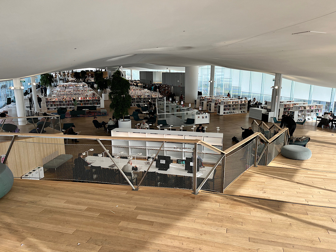 Then we walked to the central library nearby. It opened less than three years ago, and I can attest: both its design and contents are spectacular; it’s no mere book repository but rather a comprehensive cultural center.