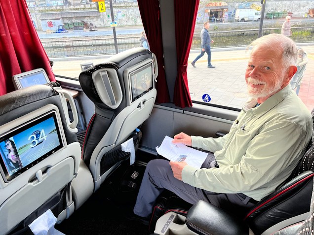 These vehicles proved to be spotless and comfy, with amenities that included TV screens in the seat backs, a decent onboard toilet, and free hot coffee. The journeys from Vilnius to Riga and then from Riga to Tallinn each took less than 5 hours, gave us a look at the countryside, and cost only $26 a person for seats in the “premium” section of the bus. The rides were smooth enough for me to work on my blog posts.