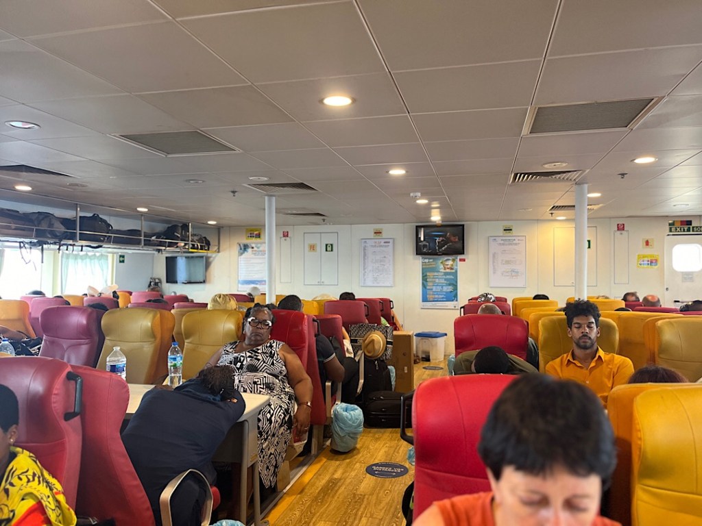 Other quirks enlivened the ride. At regular intervals, announcements informed us the car deck would be opening soon, so if you’d brought your dog and stowed it in your car or kennel, you could descend to walk (and clean up) after it for 20 minutes.