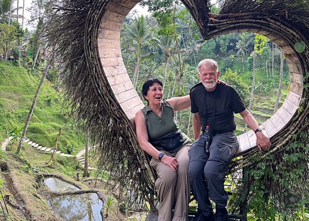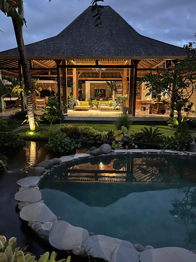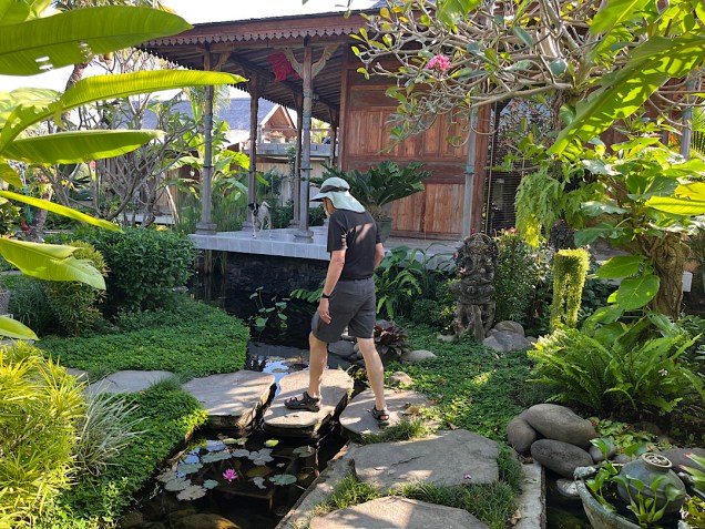 Of our two hosts, Steven was the real ex-pat. Born and raised in New Zealand, he was working as a commodities trader in Hong Kong about 10 years ago when he met Christina, an Indonesian who grew up in Malaysia. With Covid and its lockdowns, the pair decided to work out of a home base on Bali. They bought a piece of property surrounded by rice fields north of Bali’s capital, Denpasar. The morning after our long journey there from Surabaya, my Steve and I toured the beautiful compound they have built — four separate structures arranged around a series of ponds filled with plants and fish, more open to the elements than any other dwelling I’ve ever personally experienced.