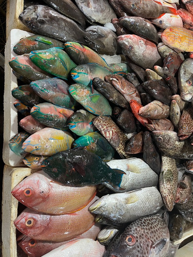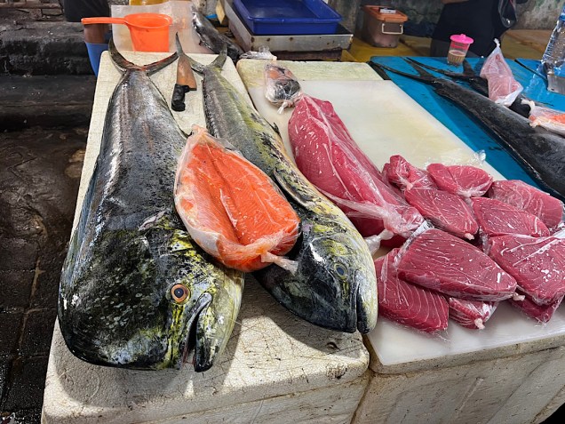 Mudana purchased a beautiful piece of mahi-mahi, and we made a quick run through the adjoining produce market to pick up what we needed for the class.