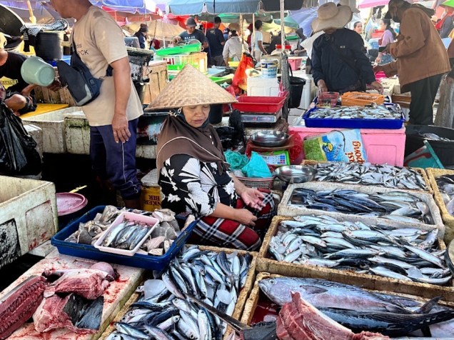 Despite being tethered to the villa, we packed in a lot throughout the rest of our stay. Most fun was the morning we spent with Chef Mudana, who offers popular classes in Indonesian and Balinese cooking. We met him and our only fellow student (a network security expert named Sanjay from Sydney) last Saturday morning at the Jimbaran fish market, a wonderfully chaotic, stinky warren of fishermen unloading their wares and vendors selling the staggering variety of protein from the sea.