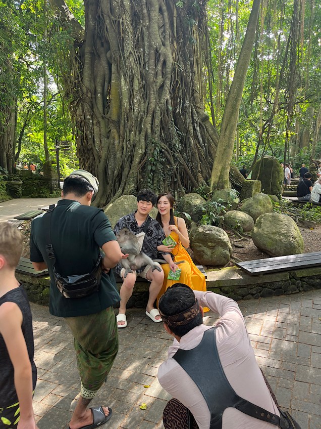 The next day we took in several other important sites. Bali’s fantastically terraced rice fields, a World Heritage Site, are scattered throughout this region, and our driver dropped us off at one of the most commercialized viewing areas. No amount of kitschy trappings could detract from the beauty of the fields. And almost equally entertaining were all the photogenic perches and swings where young ladies can rent dresses with glorious trains to wear while soaring before the camera.