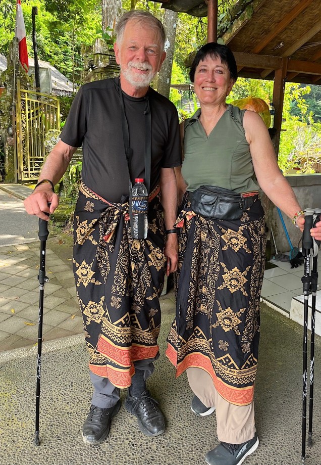 To get in, we had to don proper Balinese garb, i.e sarongs (which we borrowed for free from the temple.)