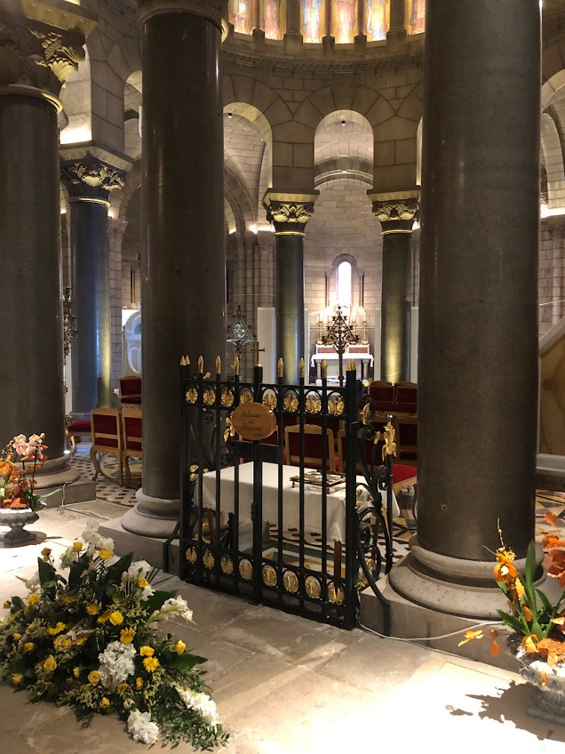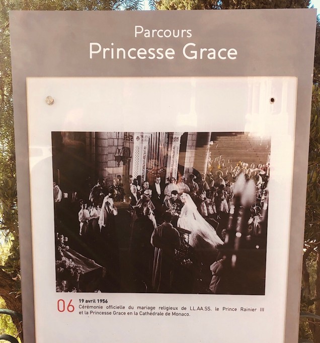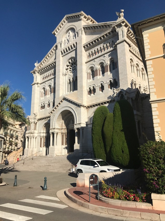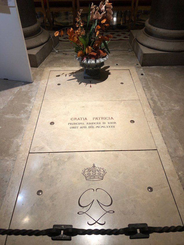 It has a cozy air (as palaces go). Then we ambled through the narrow streets, as charming as any in Europe. Beyond the center of the old city, a cliffside park and plaza reminded me of the best viewpoints in La Jolla, except for the public restrooms. Steve reported the Monegasque ones to be the cleanest and nicest he’s ever seen anywhere. A bit later, we wandered into the austere but elegant cathedral where the one-time movie star, Grace Kelly, married the prince.