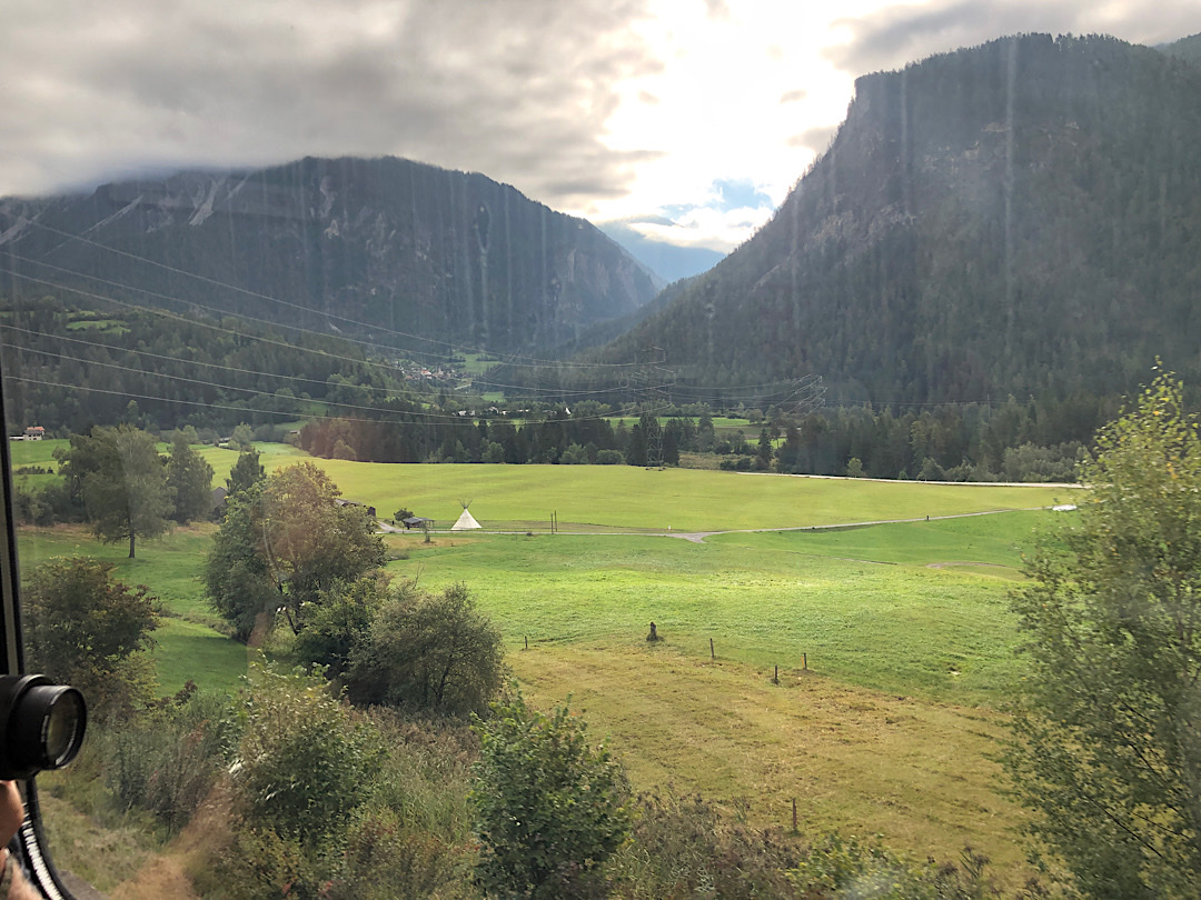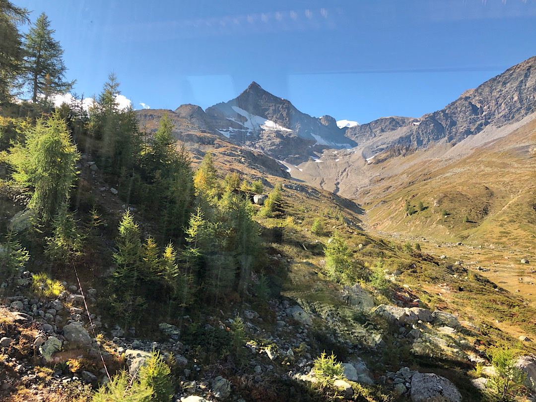 …but turned golden long before we crossed the Italian border. We had spiffy headphones that told us (in English) about the line’s history and highlights.
