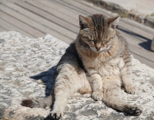 or snooze or just hang out wherever they feel like it. They’re clearly free spirits. Nobody owns them but people everywhere feed them – communal pets in the megalopolis.