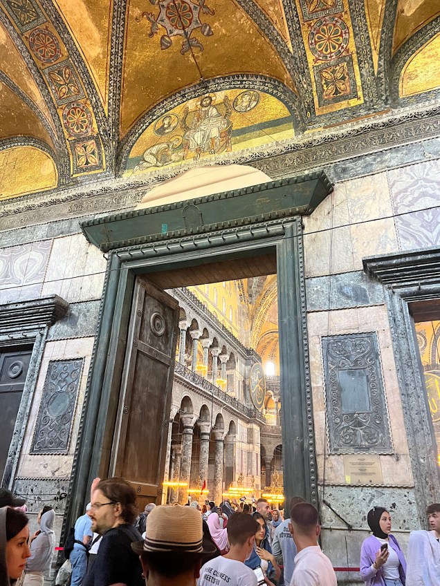 As we did these things, over andoverI was reminded of what I’ve learned before in my travels: no amount of reading or looking at pictures or films can prepare you forbeing in certain places.All I’ll say about entering the Hagia Sophia is that I felt a bit like a dolphin. In that golden ocean of space and encapsulated history, a sort of psychic sonar made my puniness palpable. But only actually being there can trigger that magical pinging.