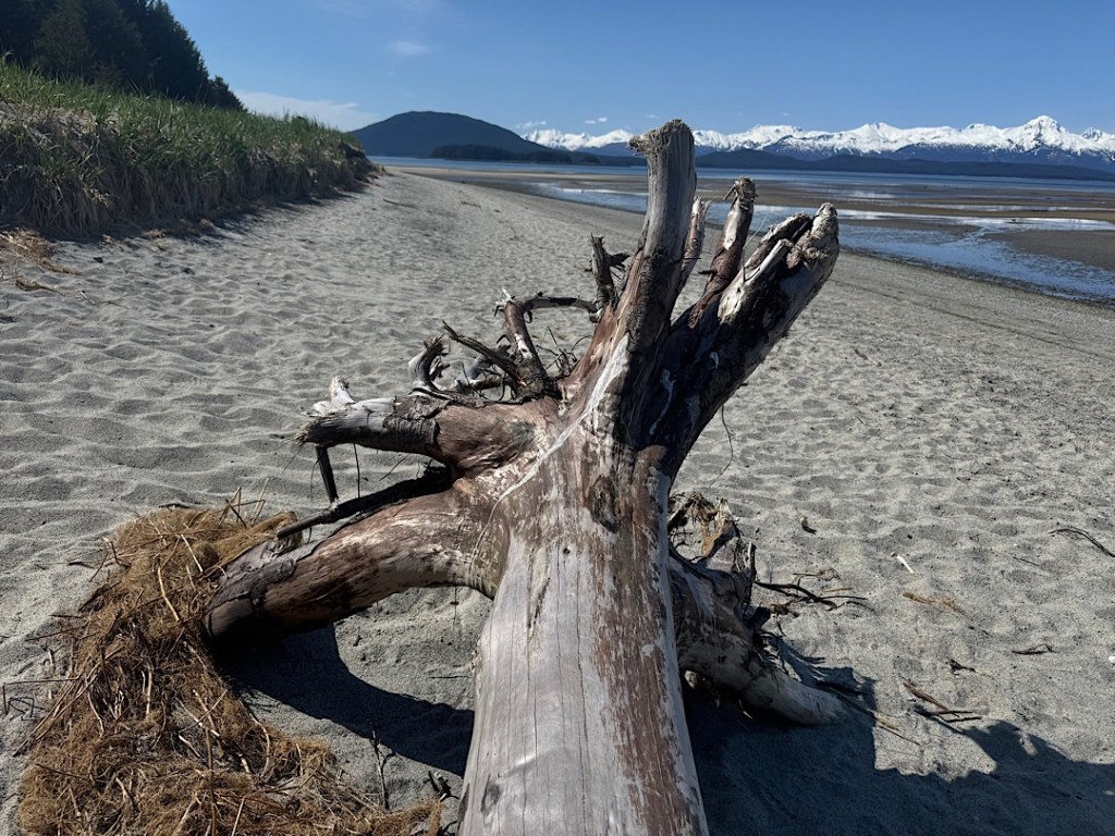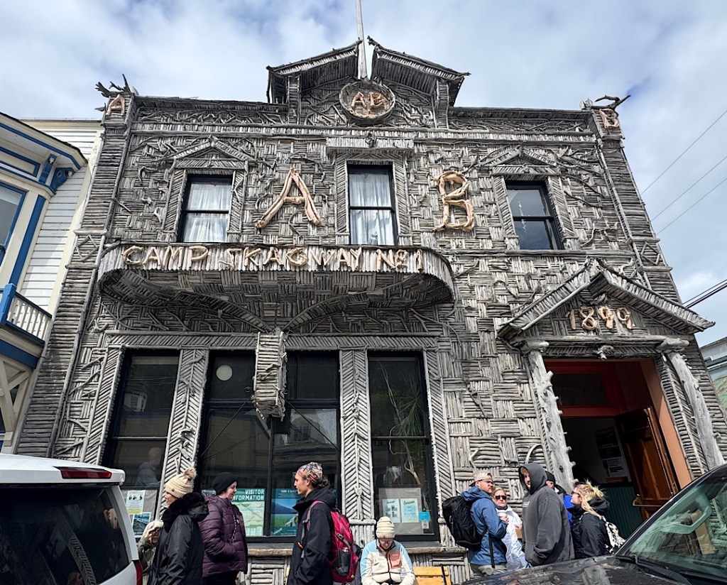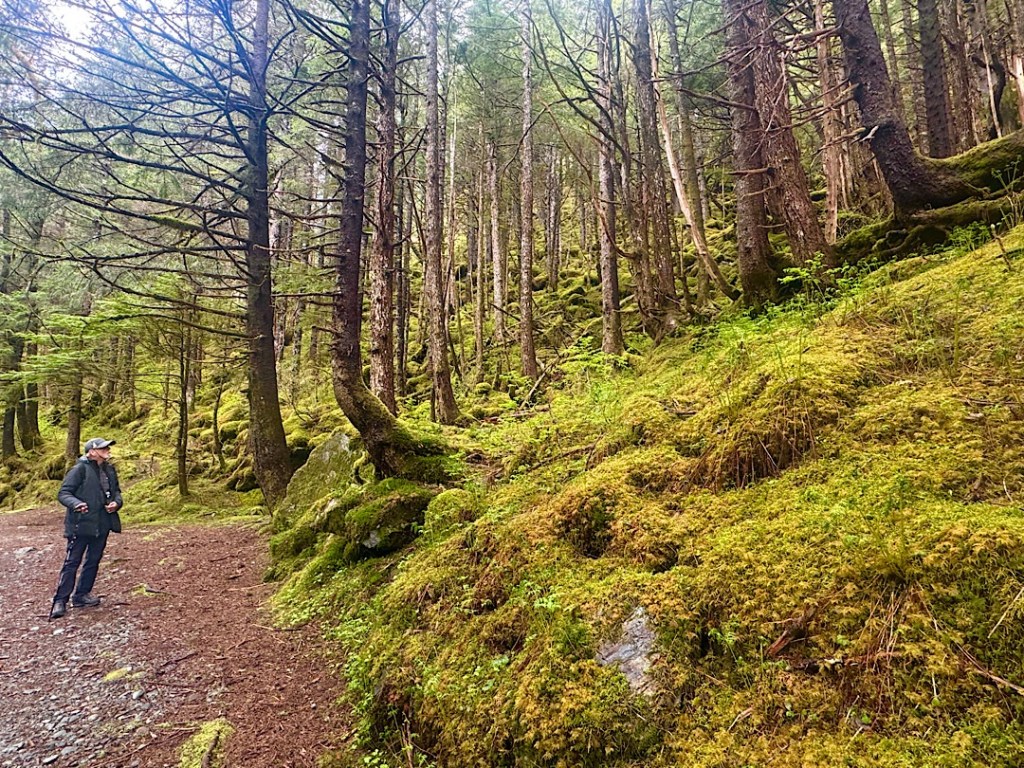 But over and over, friendly encounters with local humans left us shaking our heads in amazement. One example: strolling around Sitka we ran into a woman I recognized from the previous night’s plane ride from Anchorage. She and I hadn’t spoken to one another on the plane, but she greeted me and told us all about the summer camp to which she was delivering her two youngsters. Somehow her little boy had forgotten to pack any extra pants for the week, so they were heading to the local white elephant store to do some shopping.
